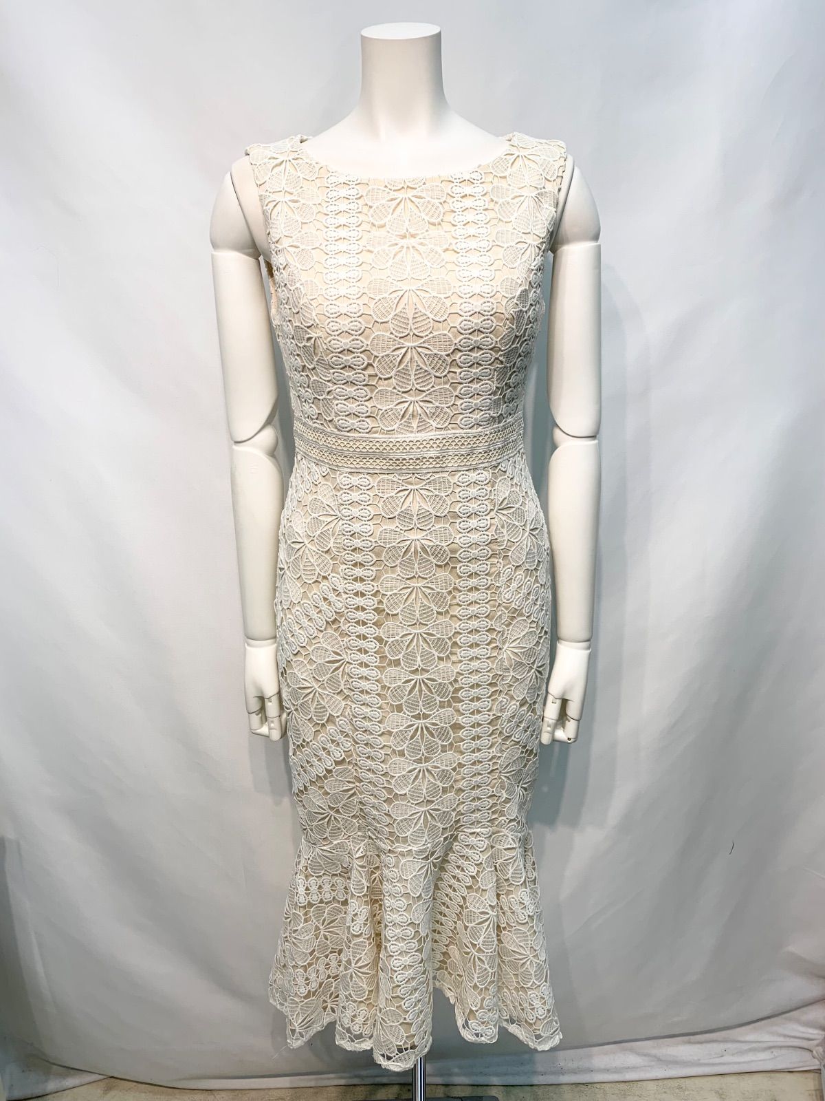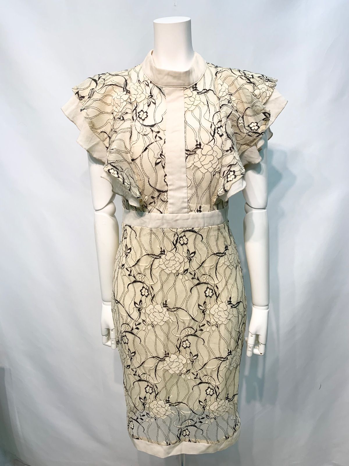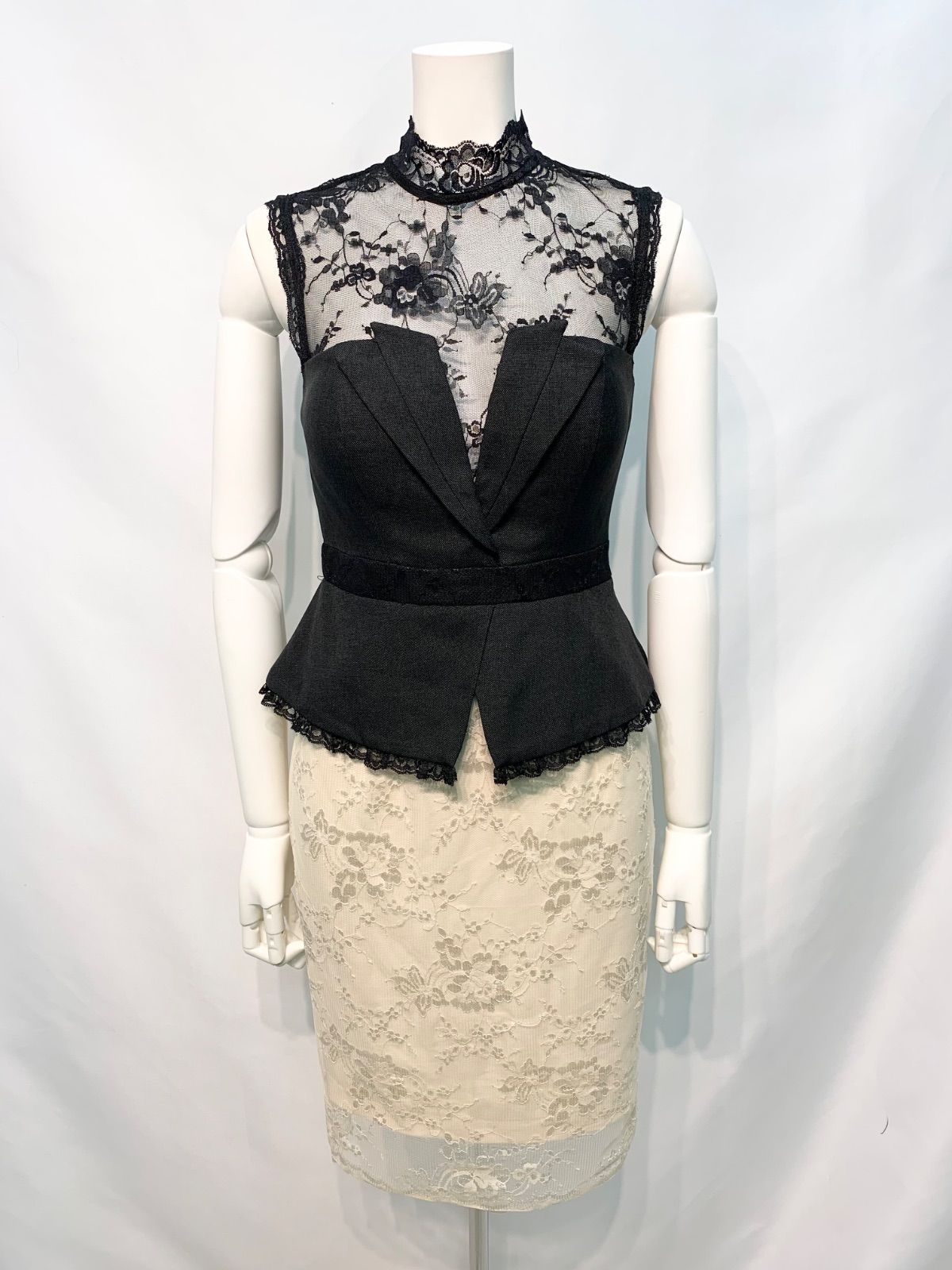 2621 DEA by ROBE de FLEURS ディアバイローブドフルール キャバクラ ドレス レース×ツイル ミディ タイト ノースリーブ ハイネック シースルー キャバドレス M