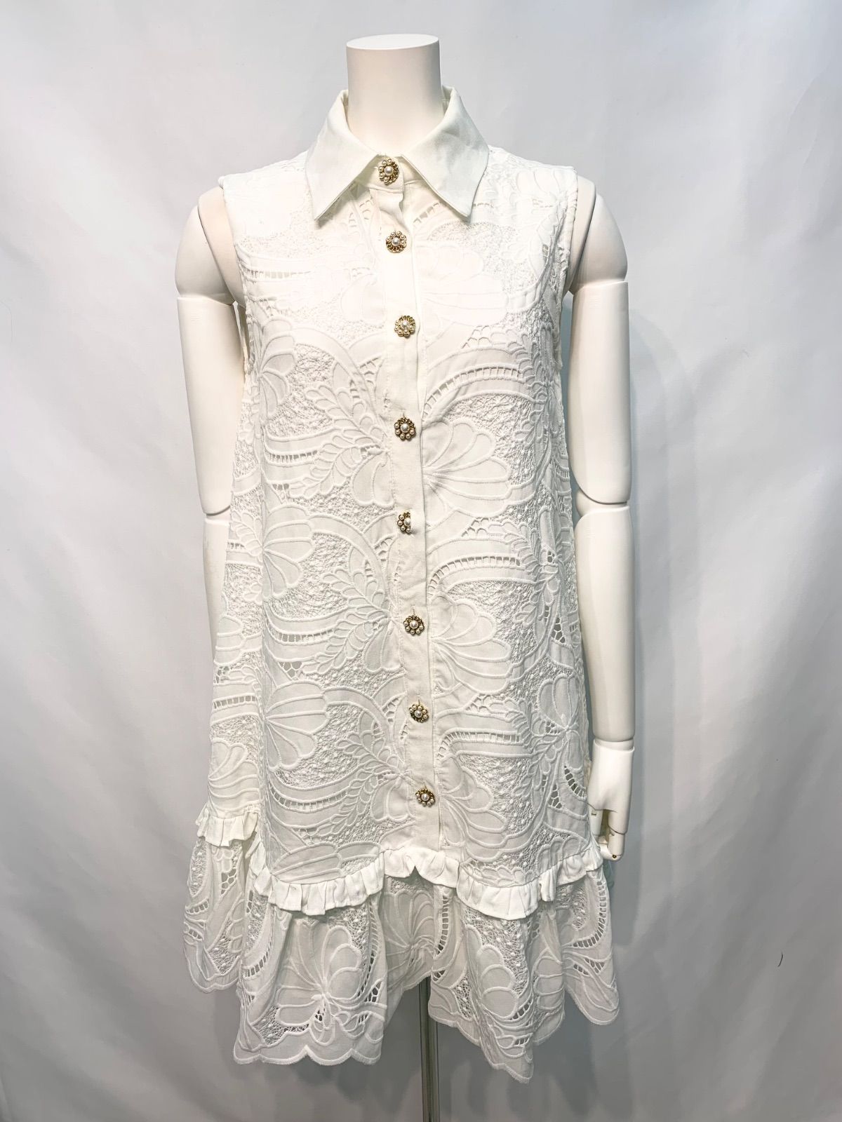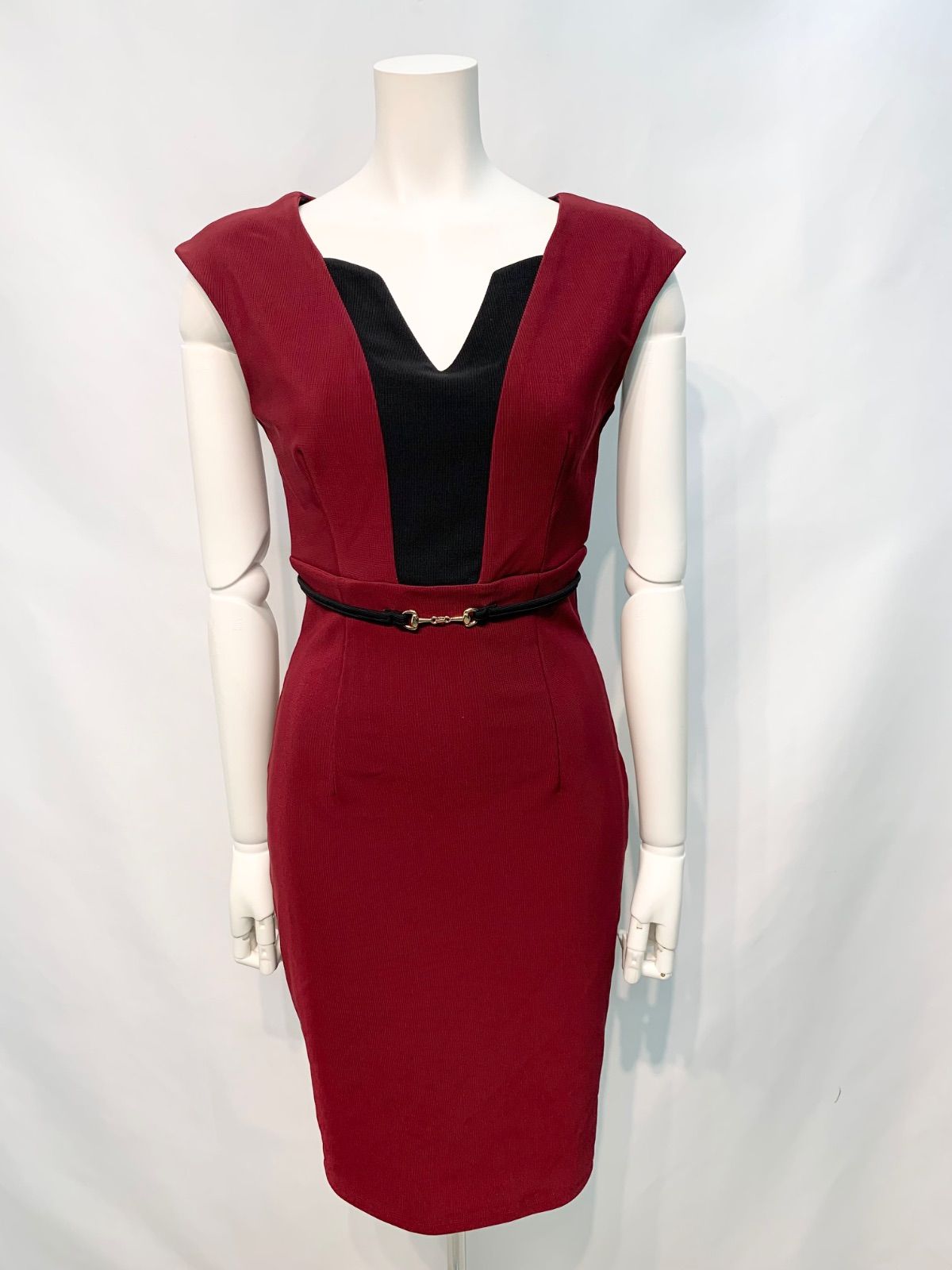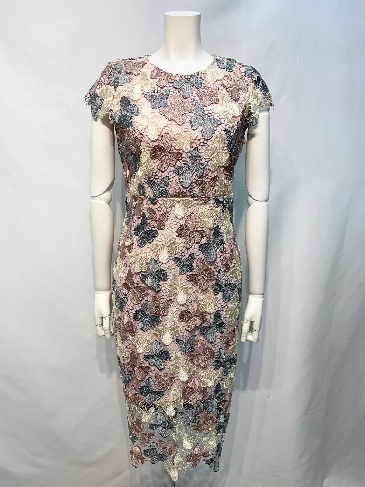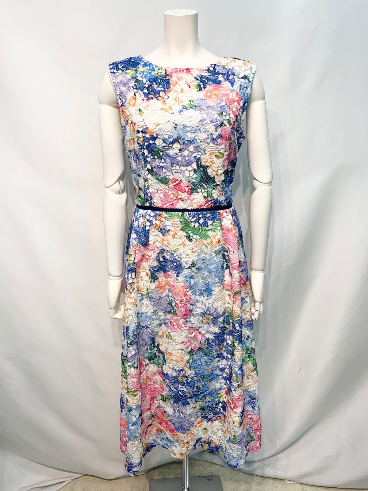 2621 DEA by ROBE de FLEURS ディアバイローブドフルール キャバクラ ドレス レース×ツイル ミディ タイト ノースリーブ ハイネック シースルー キャバドレス M