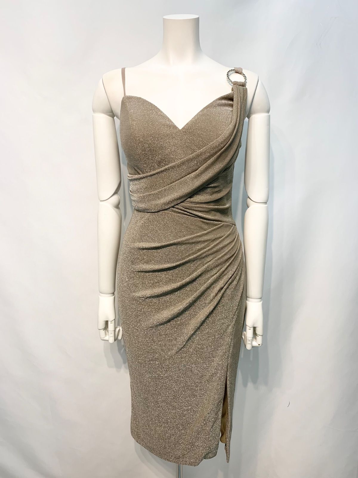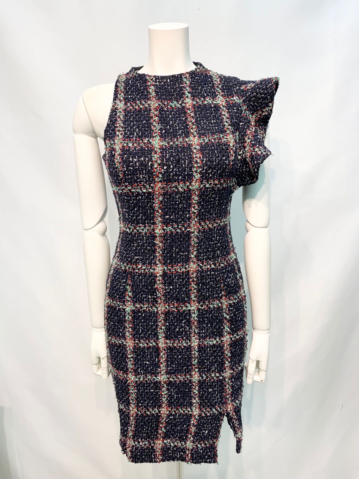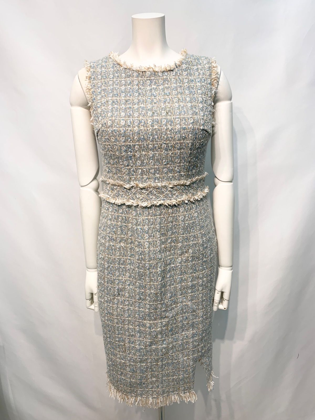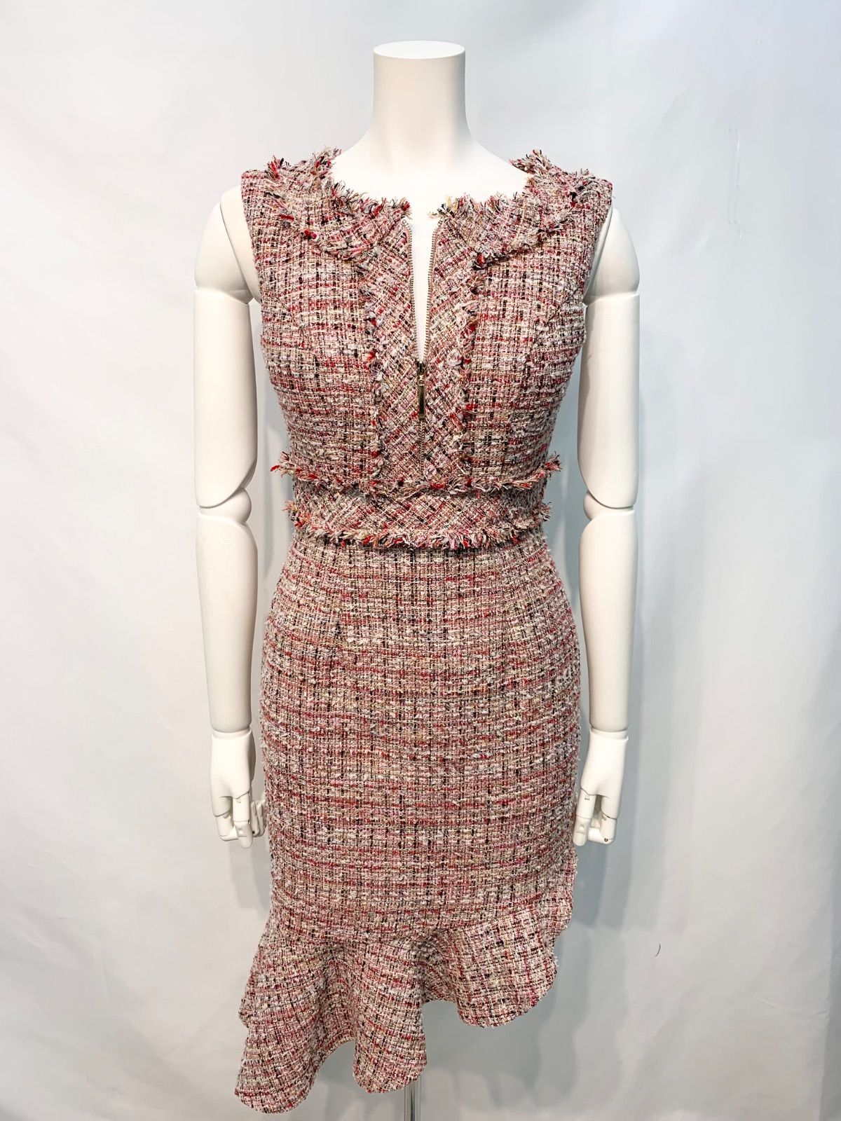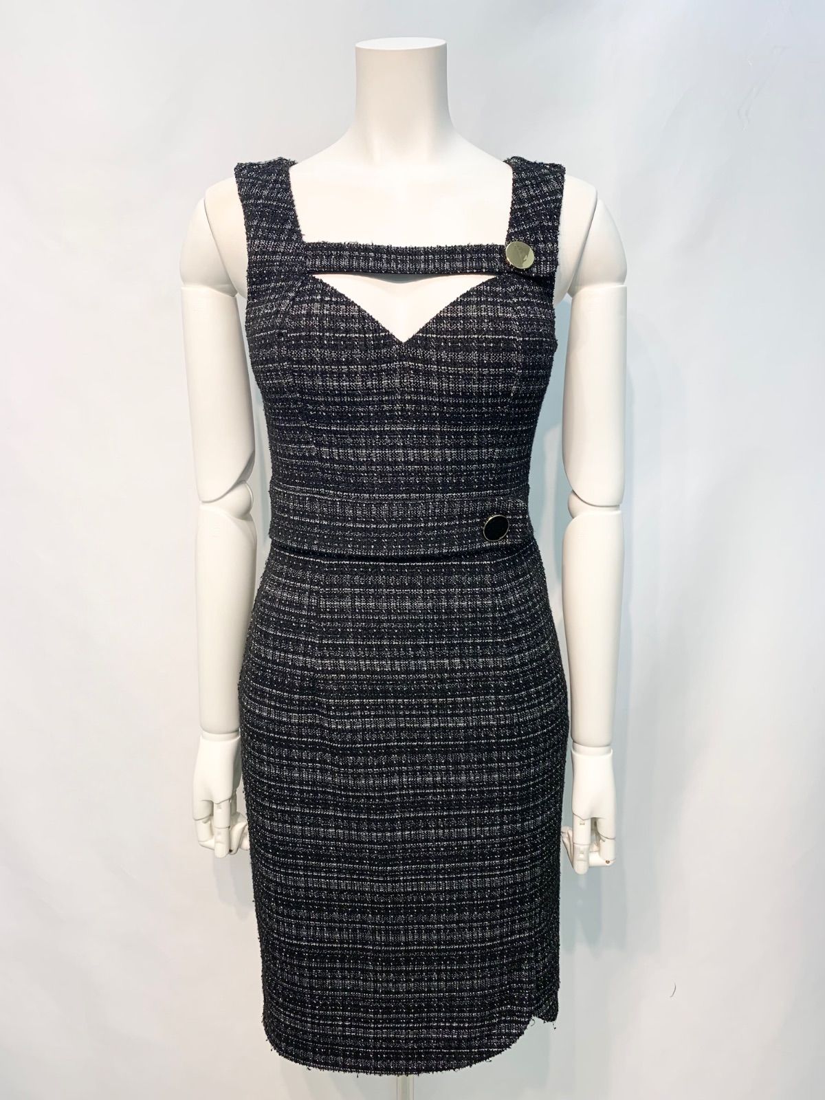 2317 DEA by ROBE de FLEURS ディアバイローブドフルール キャバクラ ドレス ツイードラメ ノースリーブ フロントジップ ミディ タイト キラキラ キャバドレス S
